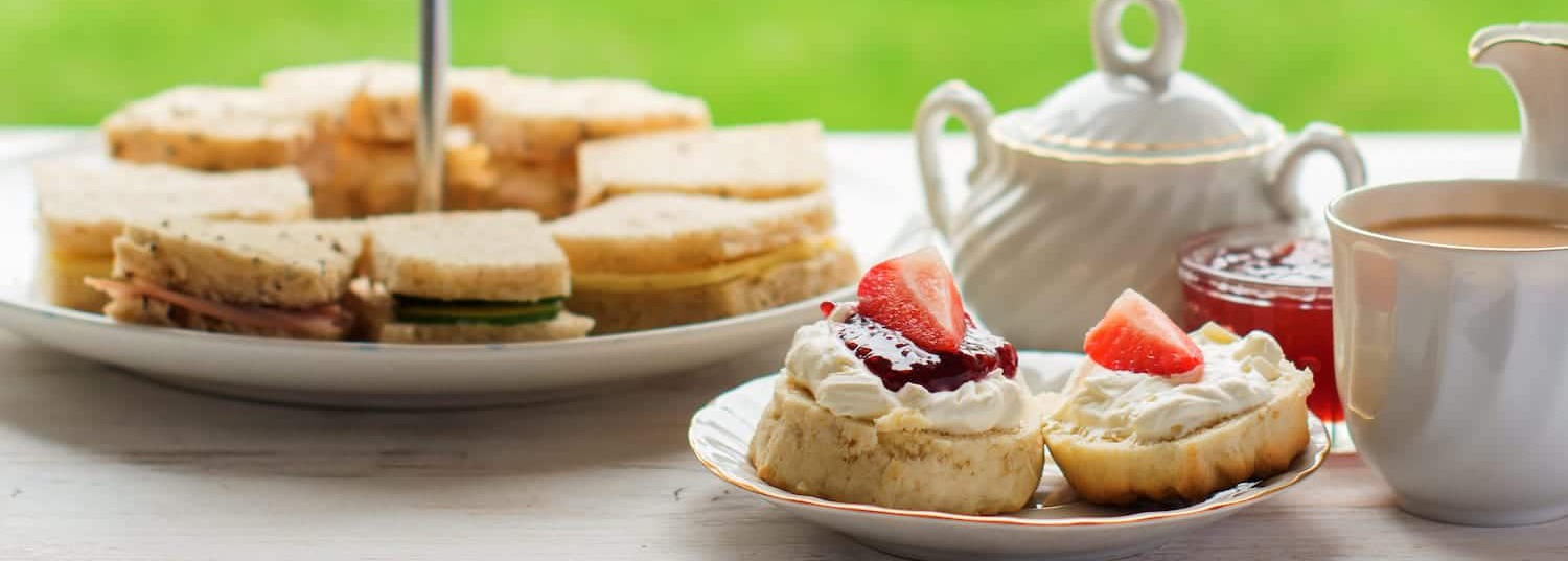 Finger sandwiches, cakes, homemade scones, cream and jam are the starting catering point and then we can build your menu to your wishes to include savoury items and making a high tea.